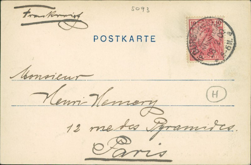 Alte Ansichtskarte aus Burscheid, gelaufen am 28.02.1900 von Burscheid (Bz. Düsseldorf) nach Paris.