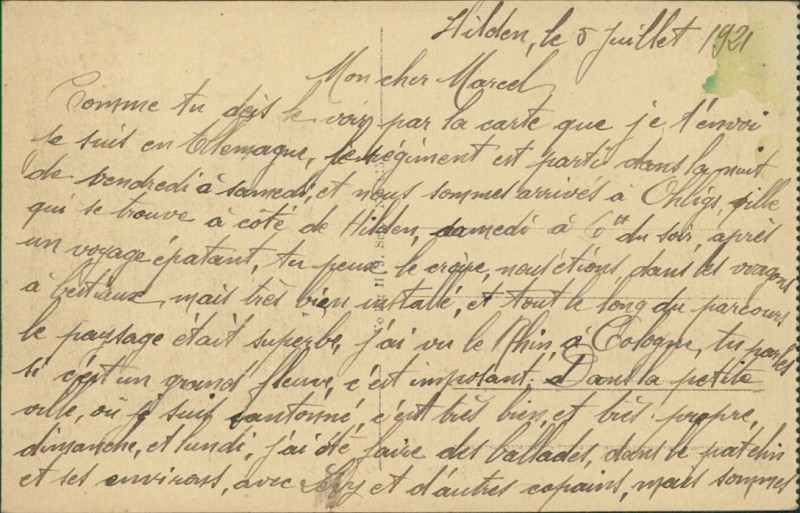 Alte Ansichtskarte aus Hilden, beschrieben um 1921.