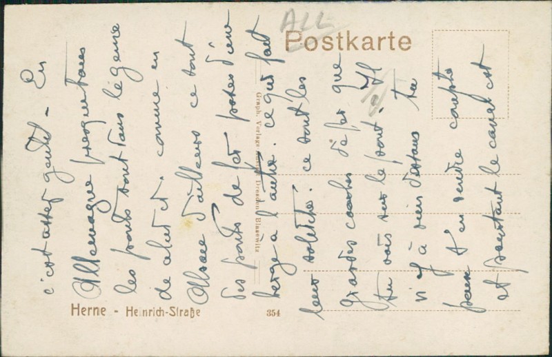 Alte Ansichtskarte aus Herne, beschrieben um 1921.