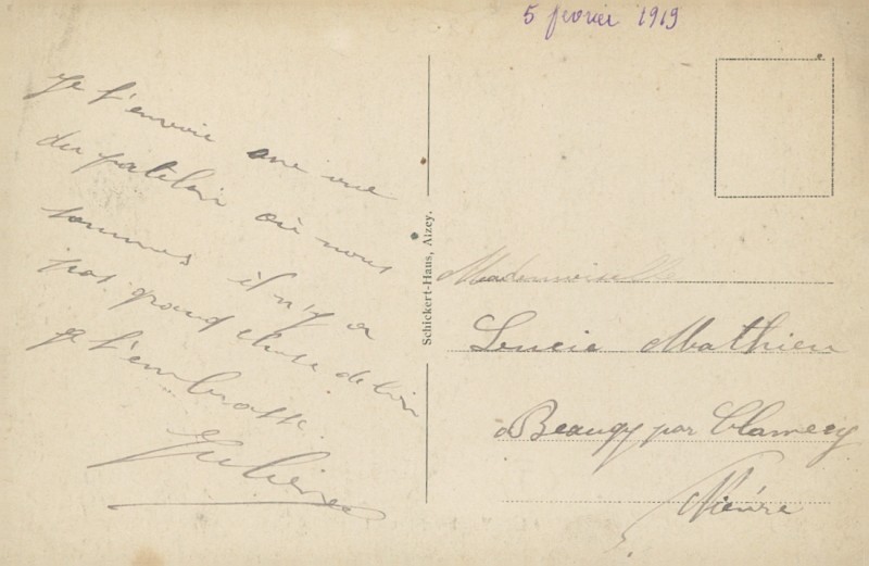 Alte Ansichtskarte aus Alzey, beschrieben am 05.02.1919.