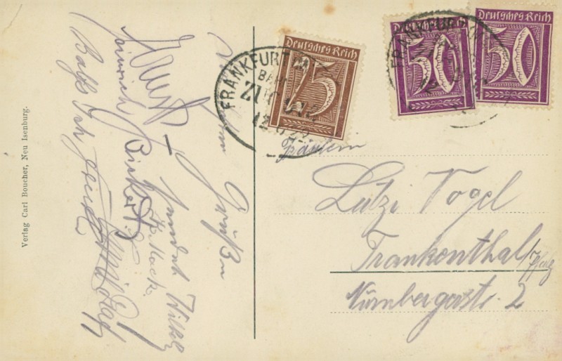 Alte Ansichtskarte aus Neu-Isenburg, gelaufen am 12.06.1922.