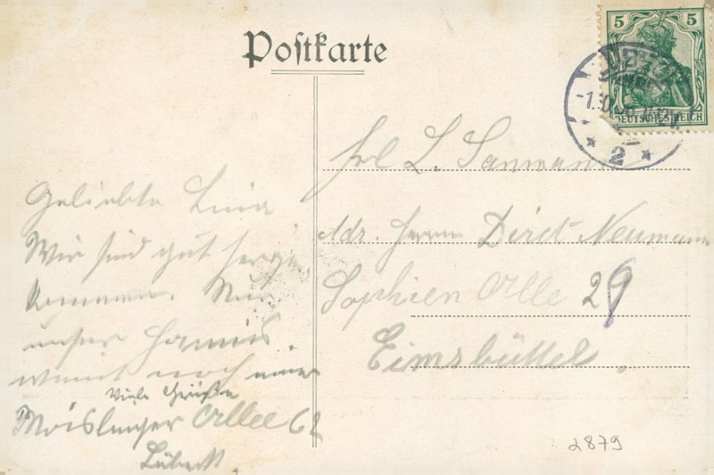 Alte Ansichtskarte aus Lübeck, gelaufen um 1906 von Lübeck nach Eimsbüttel.