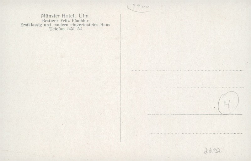 Alte Ansichtskarte aus Ulm, ungebraucht, gedruckt um 1936.