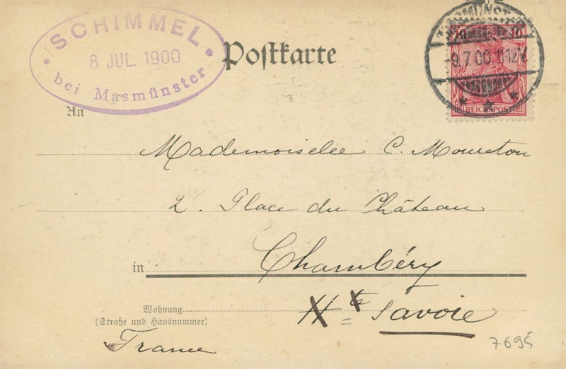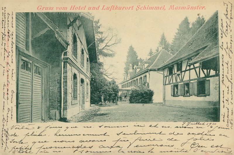 Alte Ansichtskarte aus Masmünster / Masevaux, gelaufen am 09.07.1900 von Masmünster nach Chambéry.