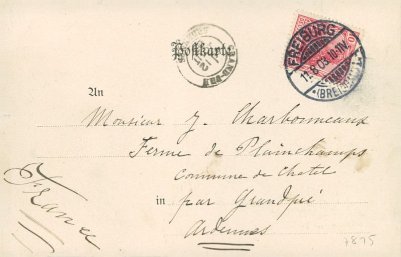 Alte Ansichtskarte aus Freiburg im Breisgau, gelaufen am 11.08.1903.