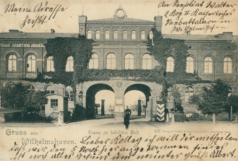 Alte Ansichtskarte aus Wilhelmshaven, gelaufen am 10.11.1902 von Wilhelmshaven nach Sulzbach. Ankunft in Sulzbach am 11.11.1902.