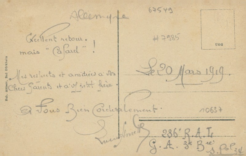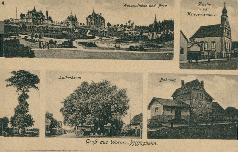 Alte Ansichtskarte aus Worms-Pfiffligheim, beschrieben um 1919.