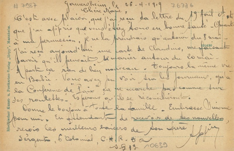 Alte Ansichtskarte aus Germersheim, beschrieben am 26.04.1919.