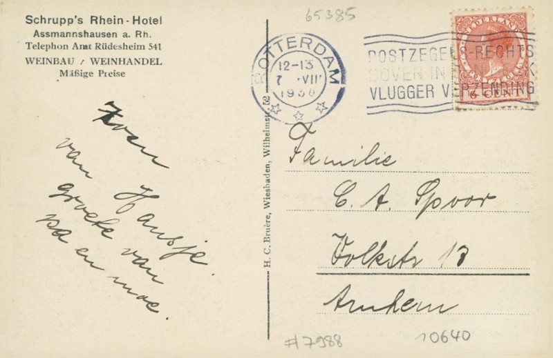 Alte Ansichtskarte aus Rüdesheim am Rhein-Assmannshausen, gelaufen um 1930.