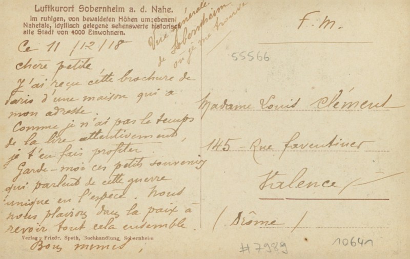 Alte Ansichtskarte aus Bad Sobernheim, beschrieben am 11.12.1918.