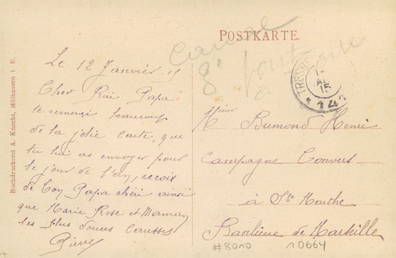 Alte Ansichtskarte aus Thann, gelaufen um 1915.