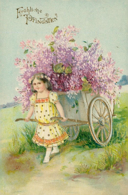Mädchen mit Karren voller Flieder