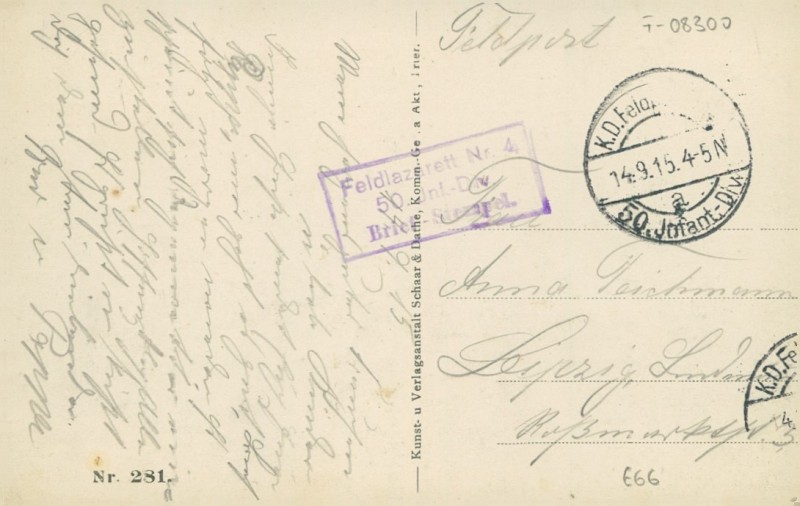 Alte Ansichtskarte aus Rethel, gelaufen am 14.09.1915.