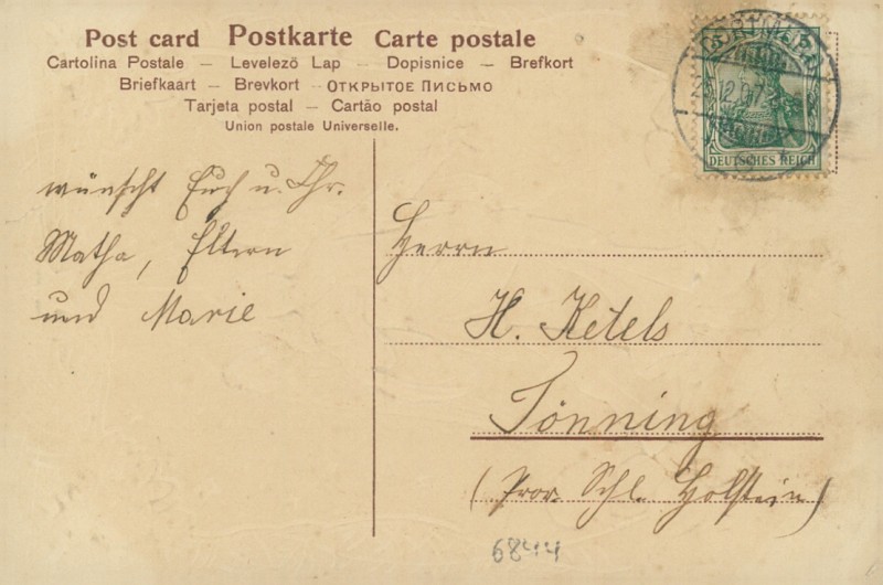 Alte Ansichtskarte, gelaufen am 25.12.1907 von Dortmund nach Tönning.