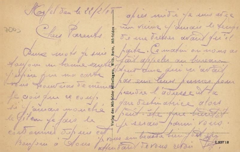 Alte Ansichtskarte aus Mörfelden-Walldorf, beschrieben am 22.02.1918.