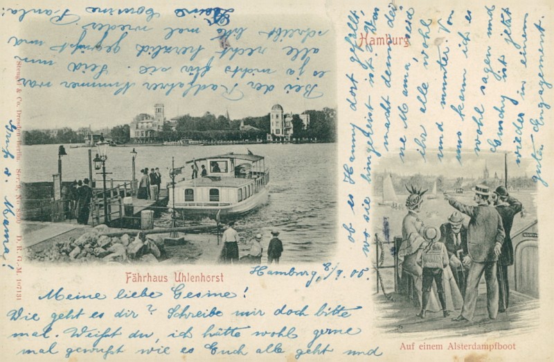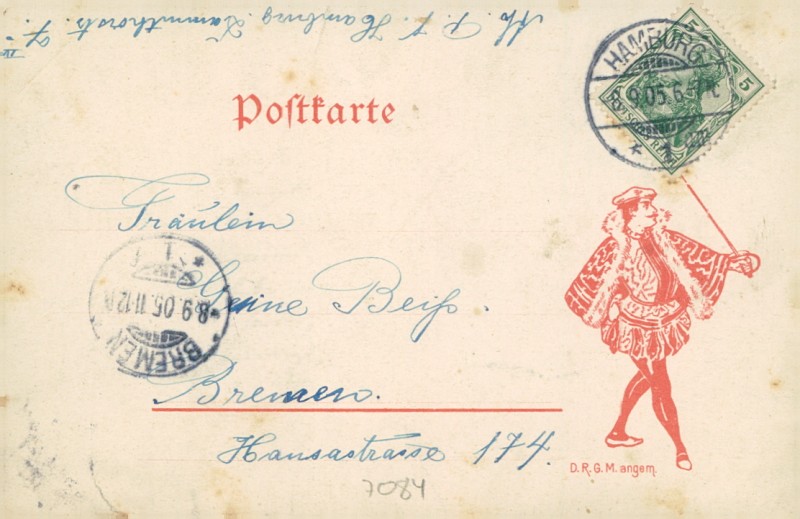 Alte Ansichtskarte aus Hamburg, gelaufen am 08.09.1905 von Hamburg nach Bremen. Ankunft in Bremen am 08.09.1905.