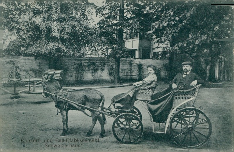 Konzert- und Ball-Etablissement "Schweizerhaus", Kutsche mit Esel