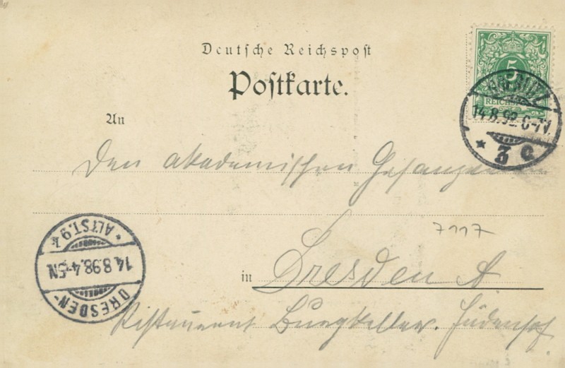 Alte Ansichtskarte aus Görlitz, gelaufen am 14.08.1898 von Görlitz nach Dresden. Ankunft in Dresden am 14.08.1898.