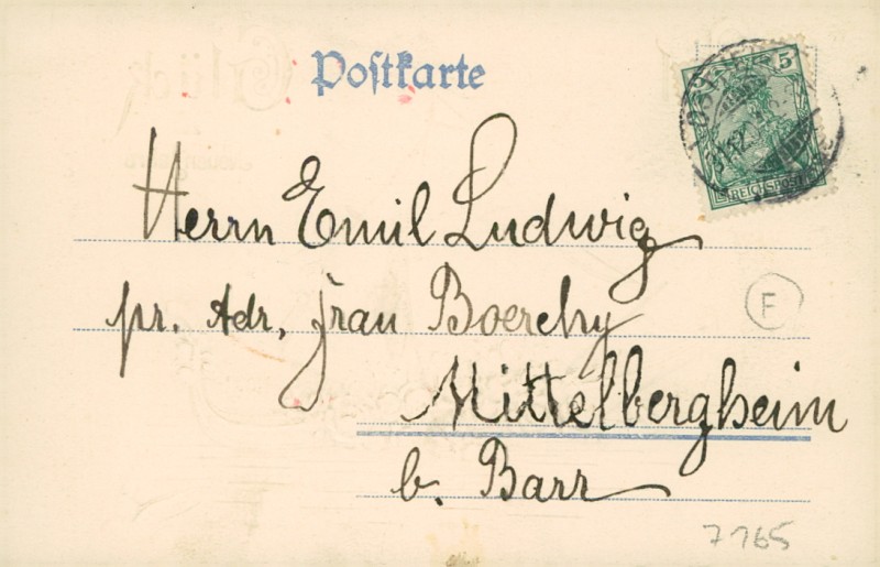 Alte Ansichtskarte, gelaufen am 31.12.1901 von Ostheim nach Mittelbergheim.