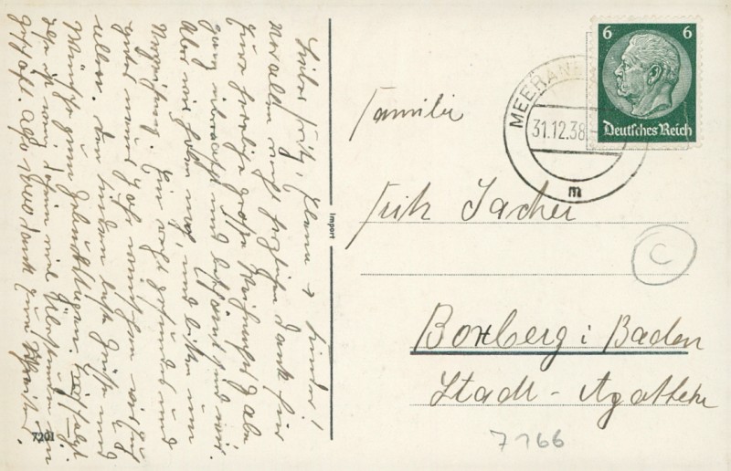 Alte Ansichtskarte, gelaufen am 31.12.1938 von Meerane nach Boxberg.