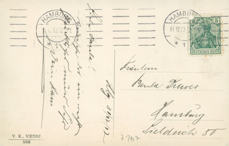 Alte Ansichtskarte, gelaufen am 31.12.1912 von Hamburg nach Hamburg.