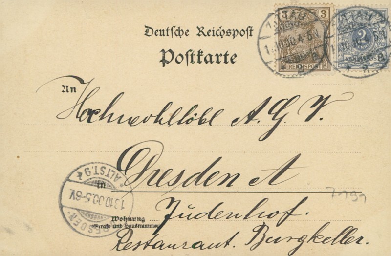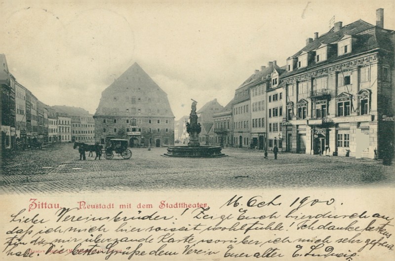 Alte Ansichtskarte aus Zittau, gelaufen am 13.10.1900 von Zittau nach Dresden. Ankunft in Dresden am 13.10.1900.