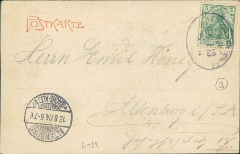 Alte Ansichtskarte aus Bad Lausick, gelaufen um 1904 von Leipzig-Chemnitz (Bahnpost) nach Altenburg (Sachs-Alt.). Ankunft in Altenburg (Sachs-Alt.) am 13.08.1904.