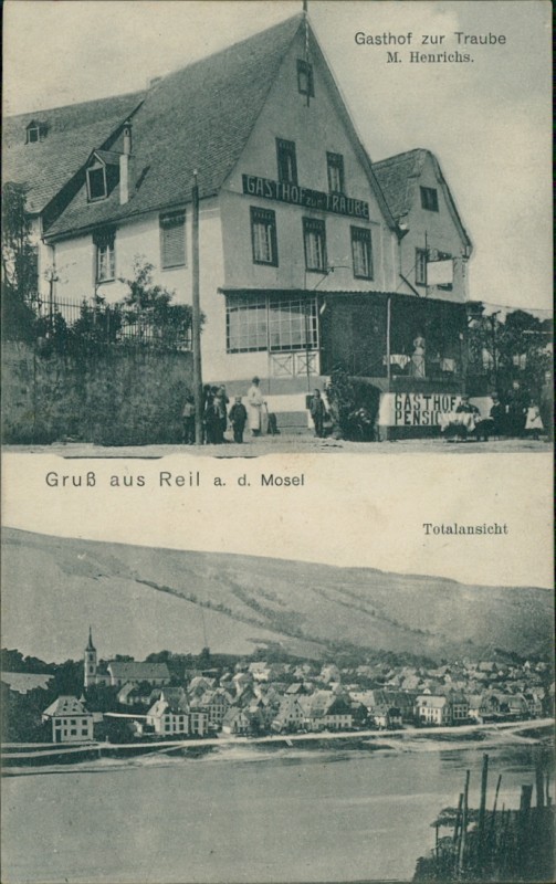 Alte Ansichtskarte aus Reil, gelaufen am 15.09.1910 von Metz-Coblenz (Bahnpost Zug 405) nach Altenwald.