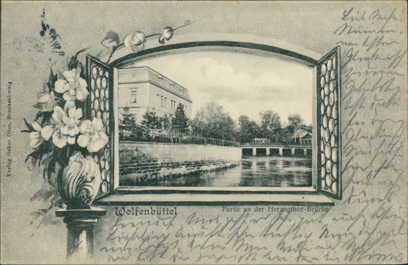 Alte Ansichtskarte aus Wolfenbüttel, gelaufen am 02.02.1902 von Wolfenbüttel nach Oldesloe. Ankunft in Oldesloe am 03.02.1902.