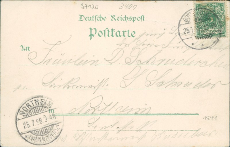 Alte Ansichtskarte aus Eddigehausen, gelaufen am 25.07.1898.