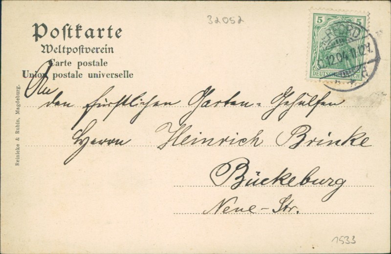 Alte Ansichtskarte aus Herford, gelaufen am 31.12.1904 von Herford nach Bückeburg.