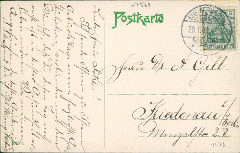Alte Ansichtskarte aus Bremerhaven, gelaufen am 28.01.1908 von Bremerhaven nach Friedenau.