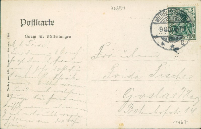 Alte Ansichtskarte aus Wilhelmshaven, gelaufen am 09.08.1907 von Wilhelmshaven nach Goslar.