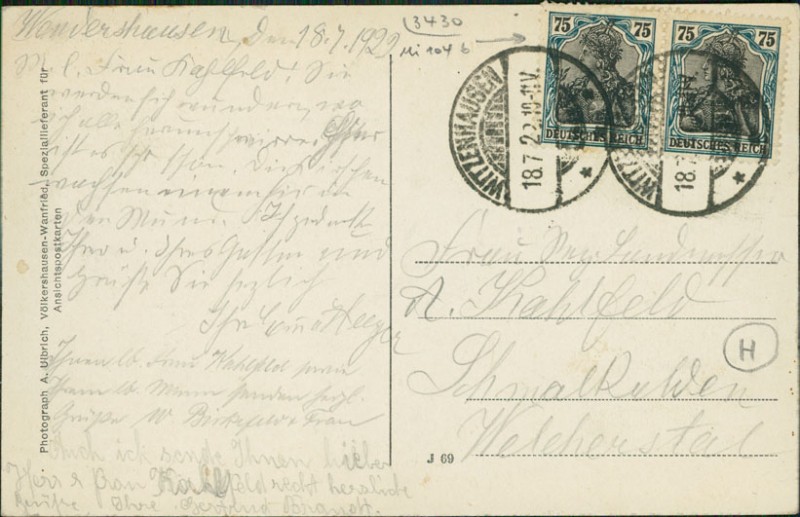 Alte Ansichtskarte aus Witzenhausen-Wendershausen, gelaufen am 18.07.1922.