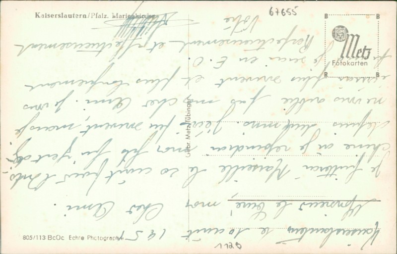 Alte Ansichtskarte aus Kaiserslautern, beschrieben um 1951.