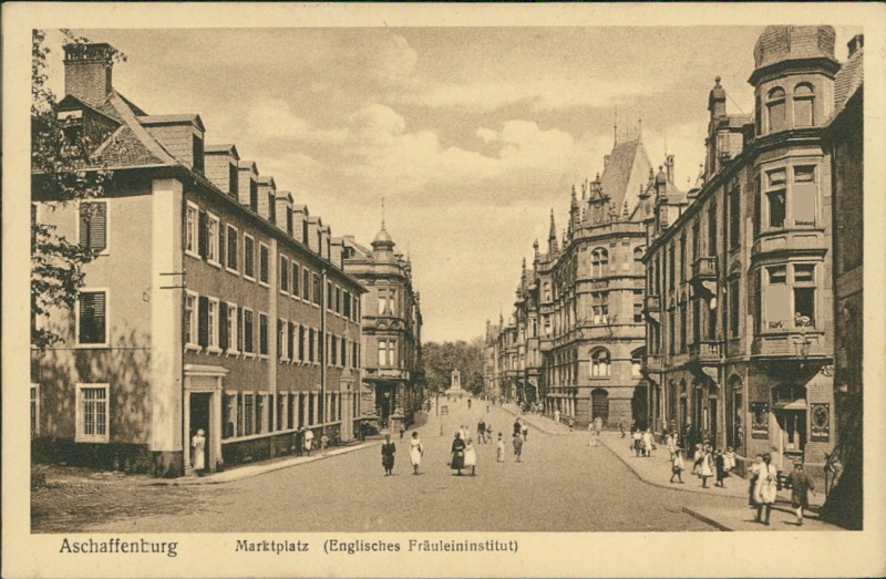 Alte Ansichtskarte aus Aschaffenburg, gelaufen am 26.06.1927 von Aschaffenburg nach Würzburg.