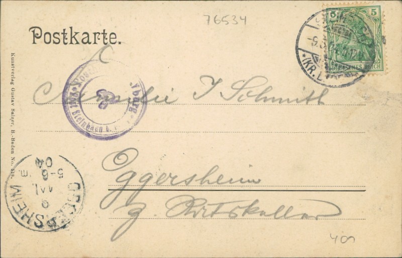 Alte Ansichtskarte aus Baden-Baden, gelaufen am 09.05.1904.