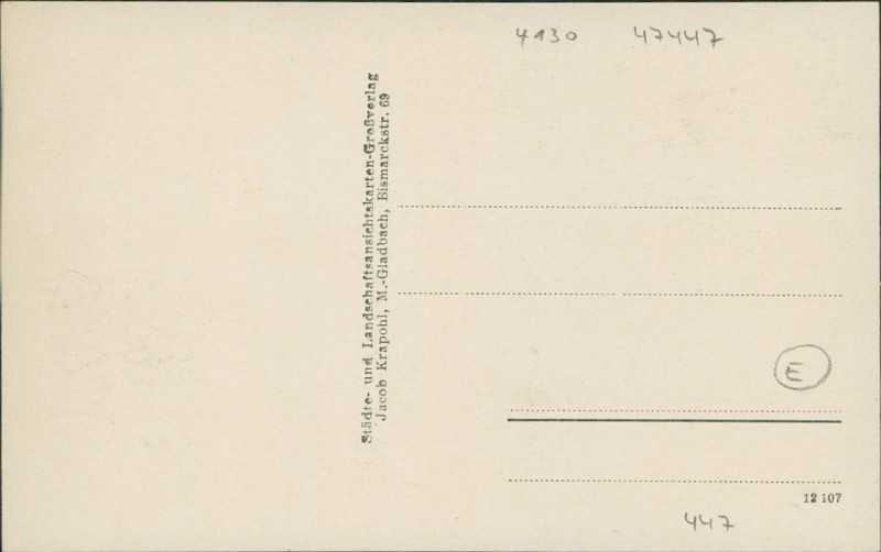 | Verlag | Städte- und Landschaftsansichtskarten-Großverlag Jacob Krapohl, M. Gladbach, Bismarckstr. 69 |