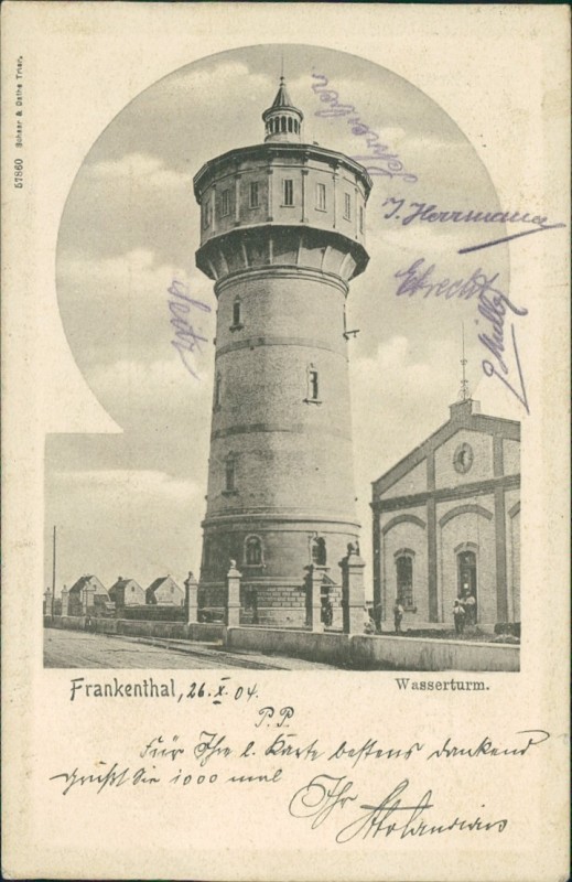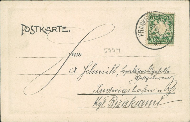 Alte Ansichtskarte aus Ludwigshafen-Edigheim, gelaufen am 26.10.1904 von Frankenthal nach Ludwigshafen.