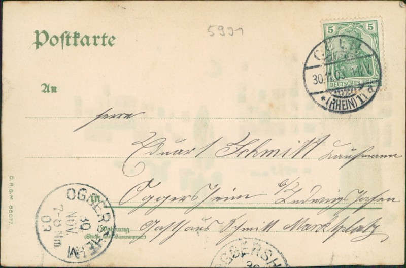 Alte Ansichtskarte aus Köln, gelaufen am 30.11.1903 von Cöln (Rhein) nach Oggersheim. Ankunft in Oggersheim am 30.11.1903.