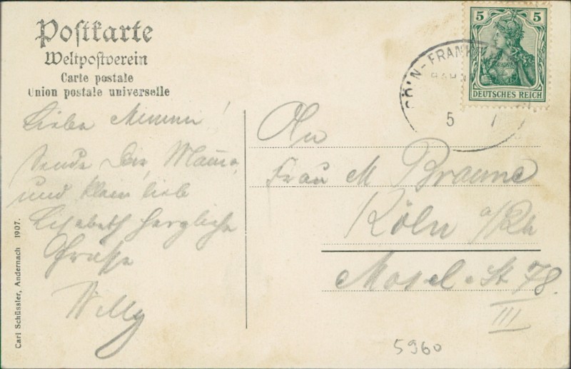 Alte Ansichtskarte aus Linz am Rhein, gelaufen um 1907.