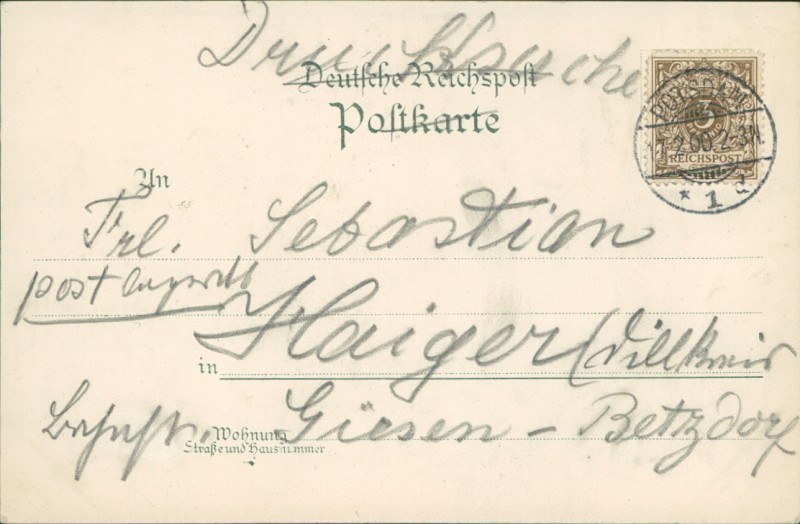 Alte Ansichtskarte aus Potsdam, gelaufen am 17.02.1900 von Potsdam nach Haiger.