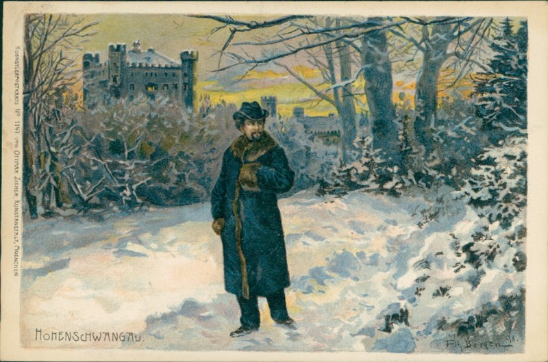 Alte Ansichtskarte aus Hohenschwangau, gelaufen am 28.01.1900 von Starnberg nach München. Ankunft in München am 28.01.1900.