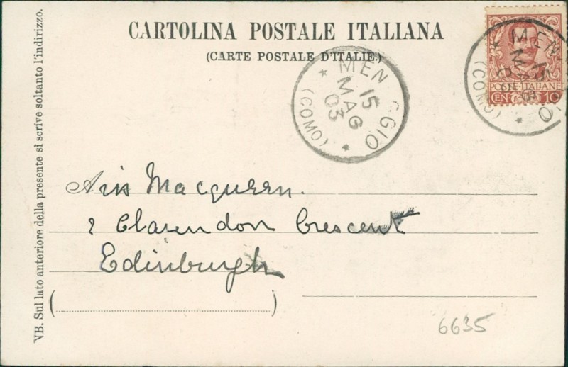 Alte Ansichtskarte aus Menaggio, gelaufen um 1903.