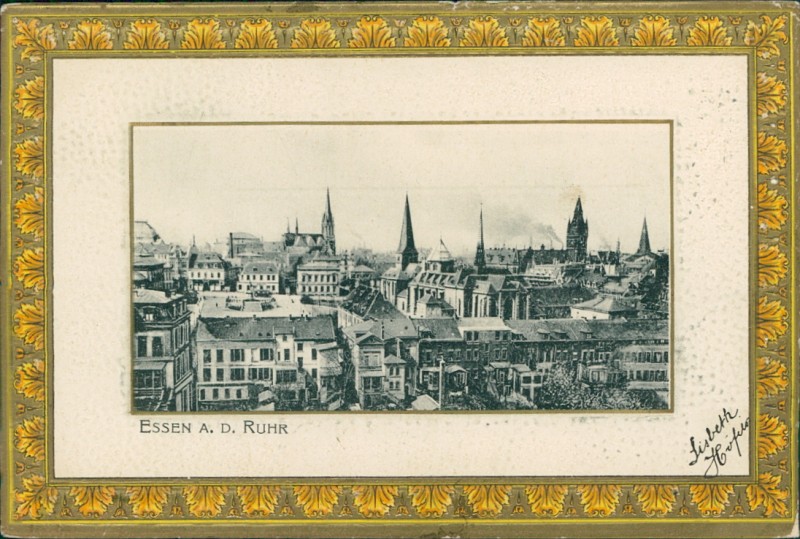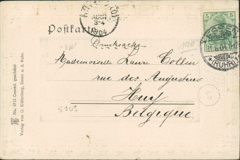 Alte Ansichtskarte aus Essen, gelaufen am 11.08.1904 von Essen nach Huy (Nord).