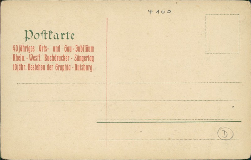 Alte Ansichtskarte aus Duisburg, ungebraucht, gedruckt um 1910.