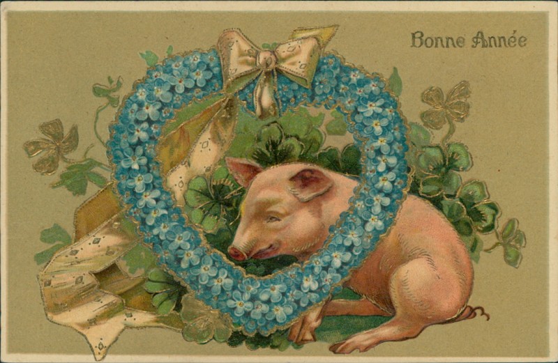 Schwein, Vergissmeinnicht, Klee (stark geprägt)