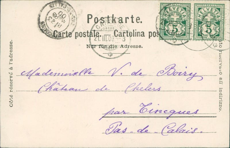 Alte Ansichtskarte aus Genf, gelaufen am 21.03.1900.