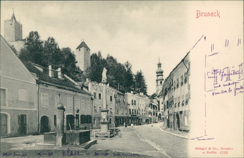 Alte Ansichtskarte aus Bruneck, ungebraucht, gedruckt um 1900.