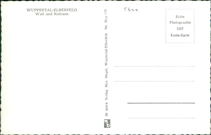 Alte Ansichtskarte aus Wuppertal, ungebraucht, gedruckt um 1957.